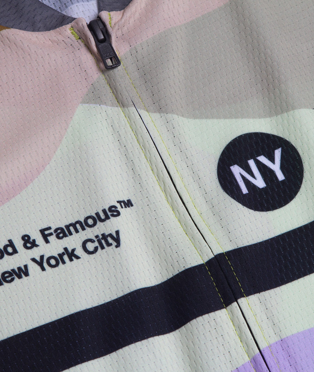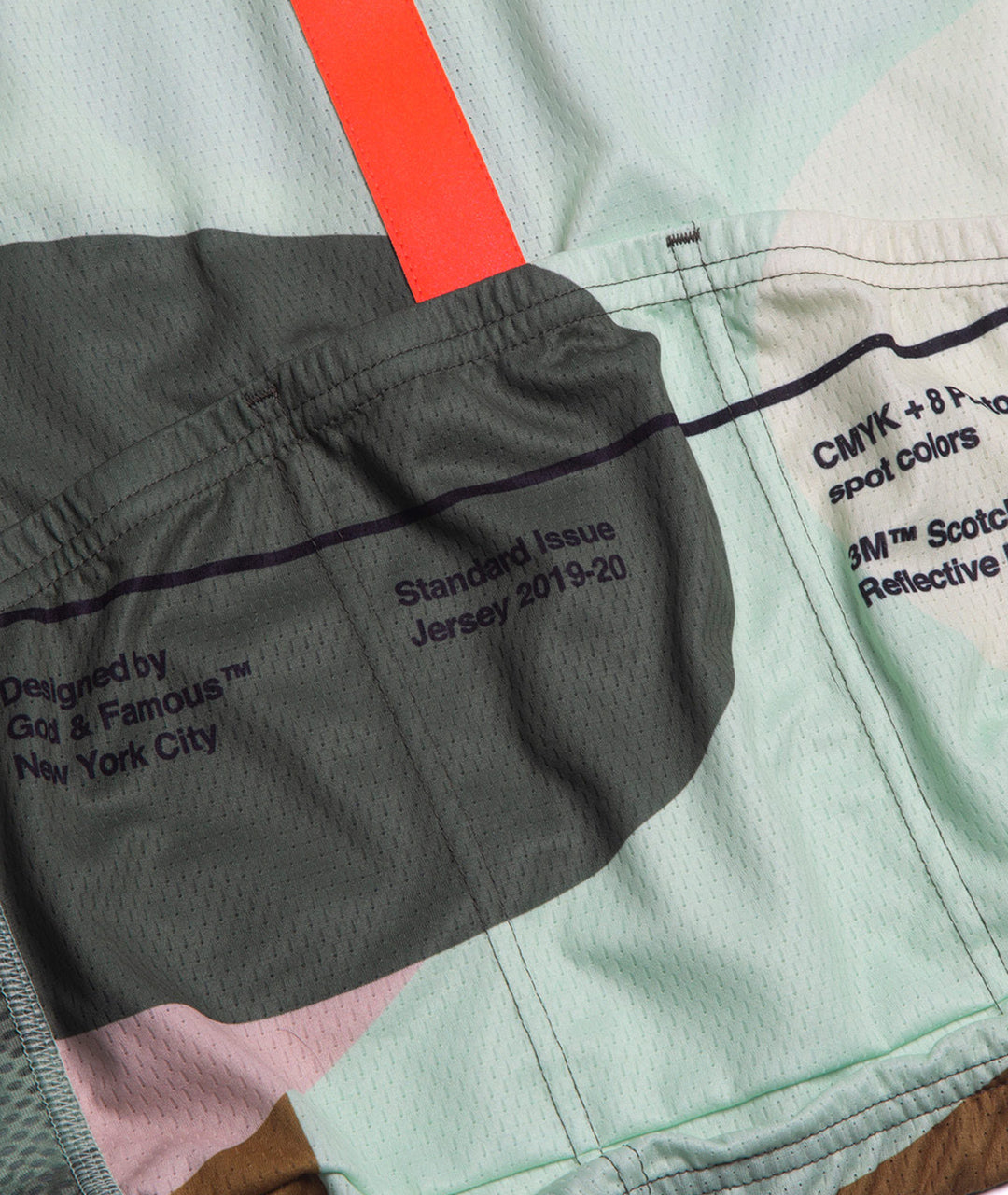 A minimal, multi-material race cut cycling jersey with ultra light mesh side panels and 3 rear pockets. Sewn-on woven labels throughout.