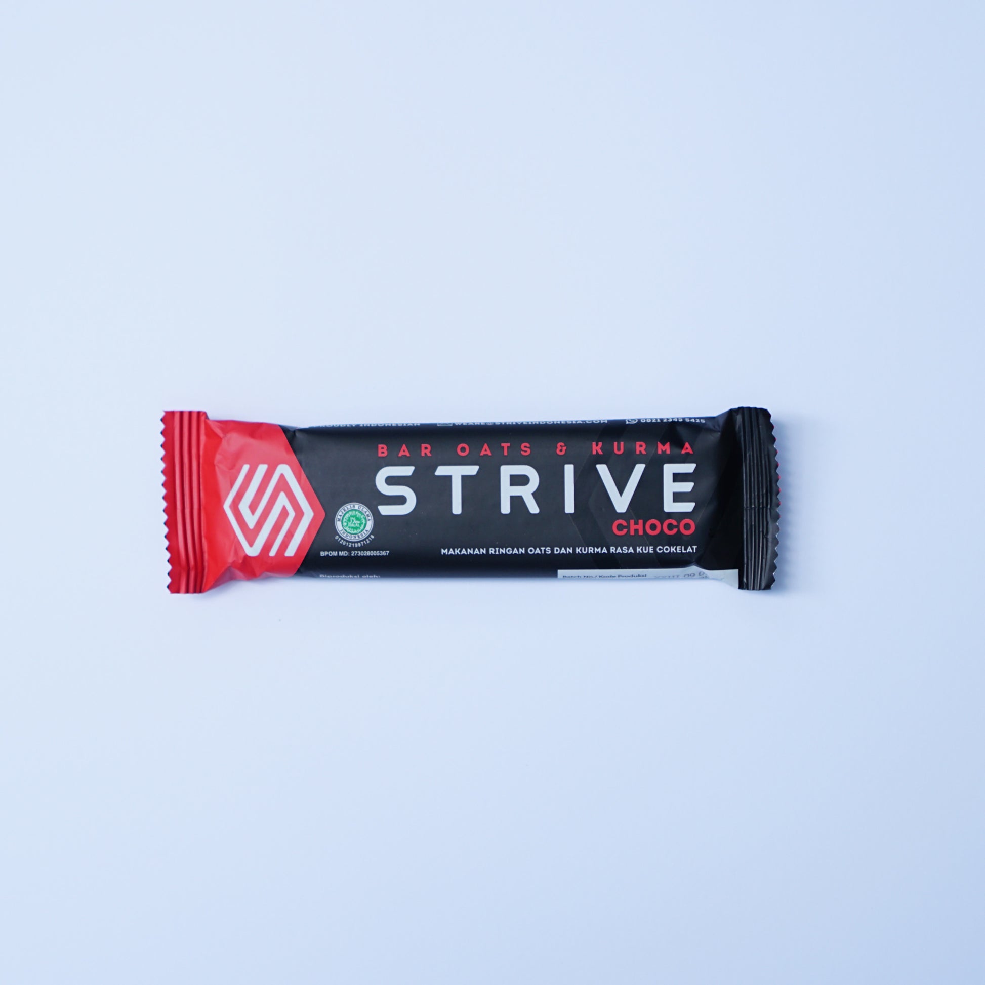 Strive Energy Bar, produk buatan Indonesia terbuat dari bahan dasar kurma, oats, kacang almond dan biji bunga matahari (tanpa gula tambahan dan bahan pengawet), yang padat gizi dan mengandung 160 kalori.